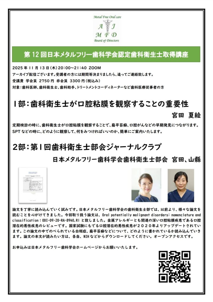日本メタルフリー歯科学会 歯科衛生士委員会 主催